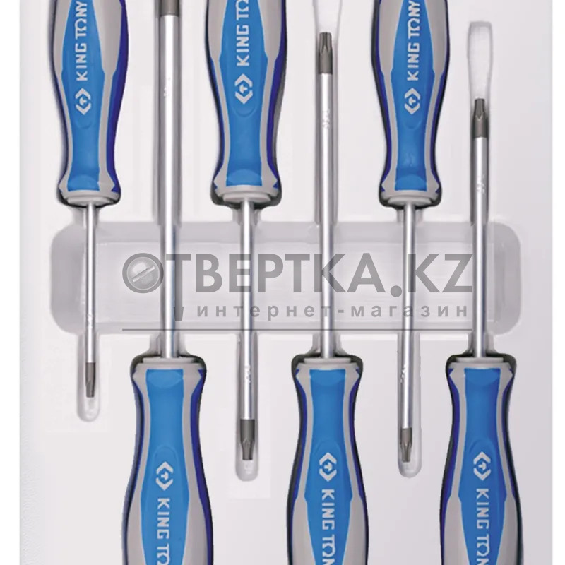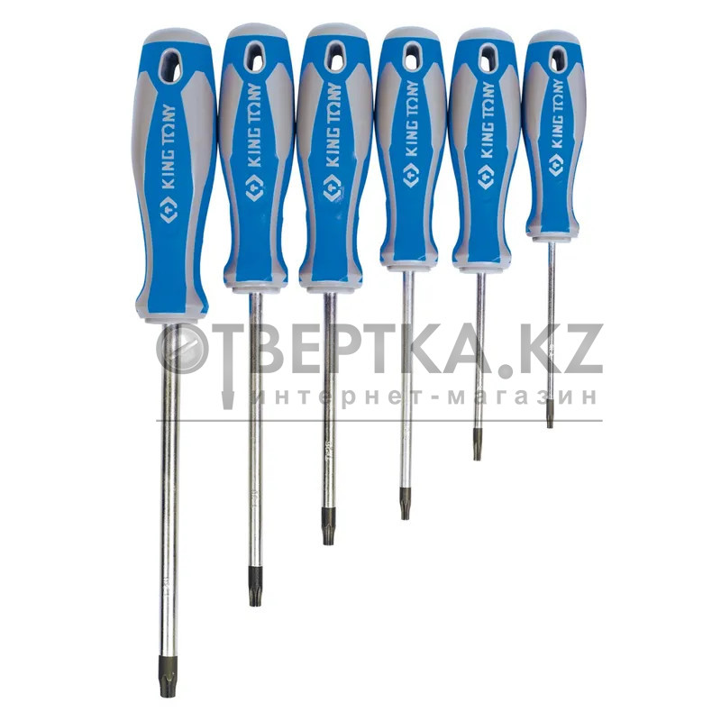 Набор отверток KING TONY Torx 6 предметов 30316PR - предназначен для работ с крепежными соединениями типа шестилучевая звезда (TORX). Эргономичная рукоять обеспечивает надежность удержания в руке во время работ. Рабочая часть отличается высокой прочностью и устойчивостью к износу.