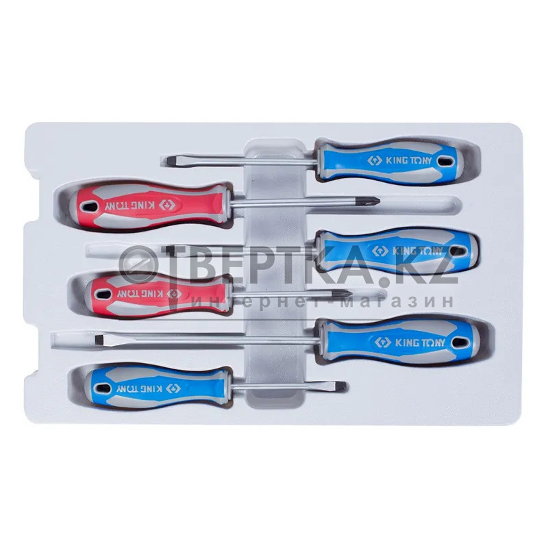 Набор отверток KING TONY 6 предметов 31216MR - состоит из плоских и крестовых отверток различных размерностей рабочих профилей и длин стержней. Инструменты удобны в использовании. Подходят как для бытового, так и для профессионального применения.