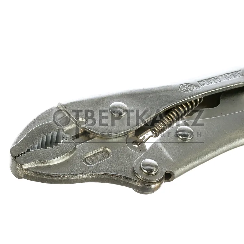 Зажим с фиксатором KING TONY закругленный 180 мм 6011-07 предназначается для крепкого захвата и удержания заготовок для проведения дальнейших манипуляций. Наиболее подходящие детали - трубчатой формы. Закругленные губки оснащены зубчиками для защиты от проскальзывания зажатого предмета. Захватные части изготовлены из высокопрочной закаленной хромованадиевой стали. Инструмент снабжен регулировочным винтом