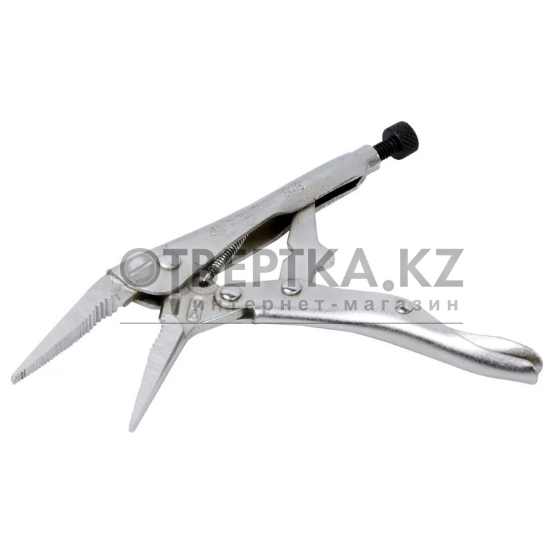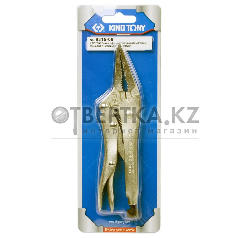 Зажим с фиксатором KING TONY 166мм 6315-06 - это мини ручной инструмент для захвата и удержания различных деталей или заготовок для проведения последующих операций. Приспособление имеет регулировочный винт и плоские, тонкие губки с зубчиками на захватных поверхностях для более крепкого удержания как профилированных, так и плоских предметов. Инструмент полностью выполнен из прочной хром-ванадиевой стали, он прослужит долгий срок даже при частом использовании.