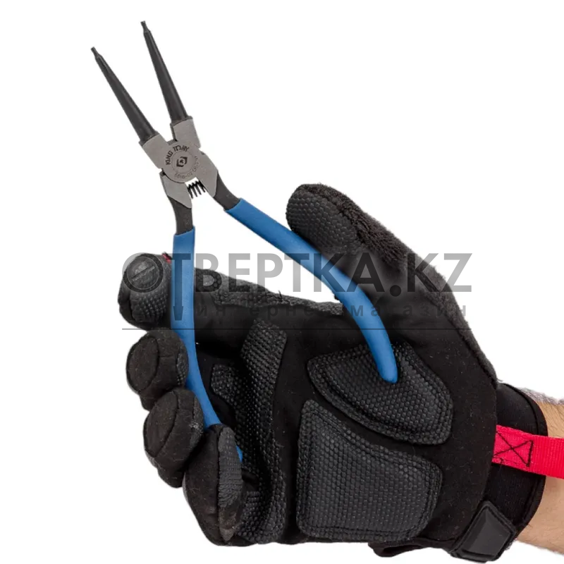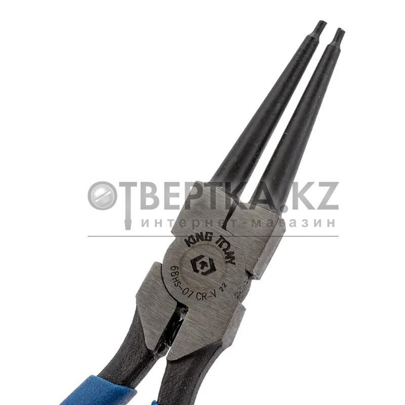 Съемник для стопорных колец KING TONY 180 мм прямые сжатие 68HS-07 - имеет прямые рабочие части, предназначен для работы на сжатие. Приспособление служит для демонтажа внутренних стопорных колец. Для удобства обхвата инструмента на рукоятках предусмотрены противоскользящие накладки.
