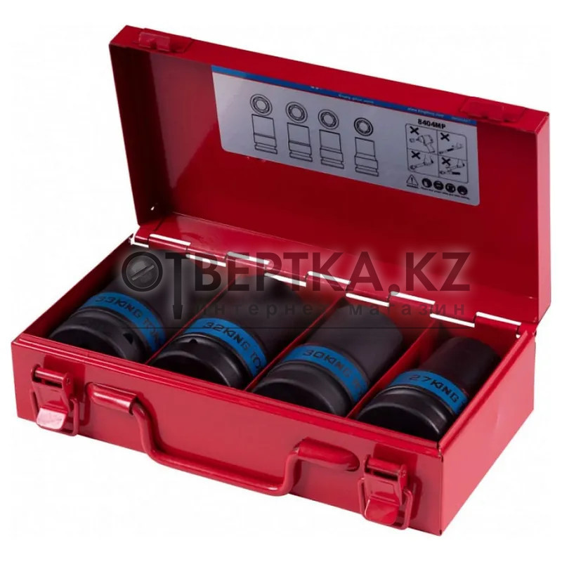 Набор ударных глубоких торцевых головок KING TONY 1" 27-33мм 4шт. 8404MP - предназначен для монтажа и демонтажа крепёжных узлов и деталей. Используется в работе с пневматическим или электрическим гайковёртом, а также прочими инструментами или методами с применением ударной нагрузки. Область применения: станции технического обслуживания автомобилей (СТО), автосервисы, автомастерские, промышленность, производство, строительство.