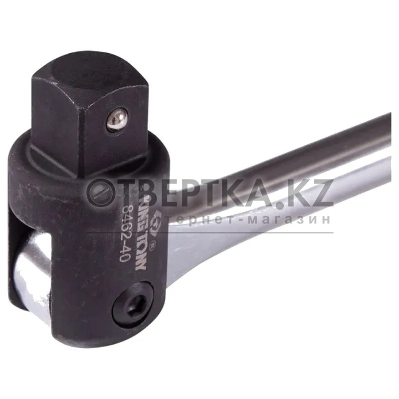 Вороток KING TONY 1" 1020мм 8462-40P - используется для работ с крепежом деталей, установки и снятия различных креплений, узлов и приспособлений небольших размеров. Инструмент применяется на станциях технического обслуживания автомобилей (СТО), в автосервисах, автомастерских, в промышленности и в быту. Шарнирное соединение рабочей головки позволяет изменять угол приложения нагрузки, в зависимости от расположения и доступности крепёжного соединения. Вороток выполнен из качественной и прочной инструментальной стали, что обеспечивает надежность и долгий срок службы.