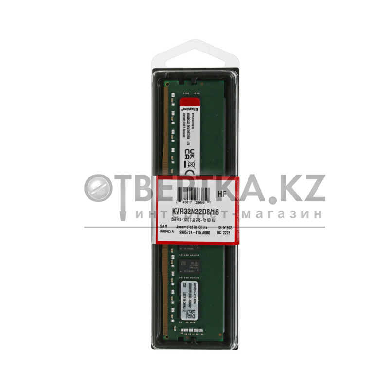Комплект модулей памяти Kingston KVR32N22D8/16WP DDR4 16GB (Kit 2x8GB) 3200MHz