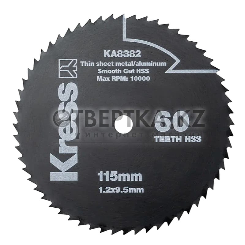 Диск Kress 60T HSS KA8382 — предназначен для резки по металлу и алюминию. Диаметр диска — 115 мм, посадочный диаметр — 9,5 мм, толщина диска — 1,2 мм. Подходит для электрической циркулярной пилы Kress KU436P 710Вт.