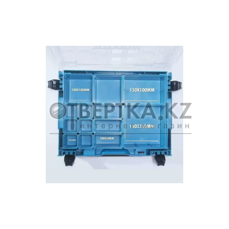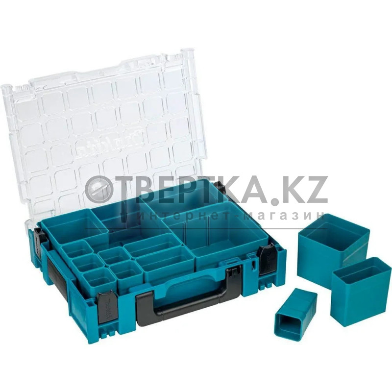 Makita MAKPAC 191X80-2 — модульный органайзер с 13 съёмными ячейками, предназначенный для удобного хранения и транспортировки мелких деталей, крепежа и комплектующих.