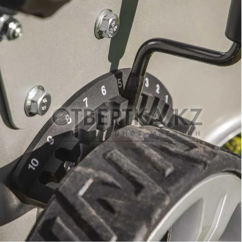 • Высота скашивания удобно регулируется в 10 положениях при помощи рычага