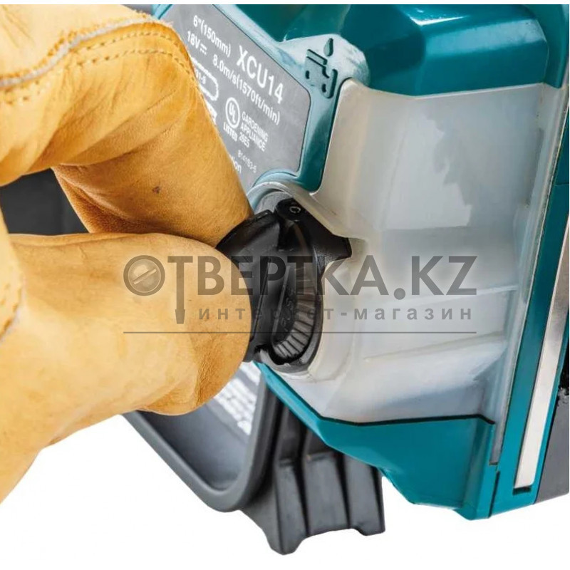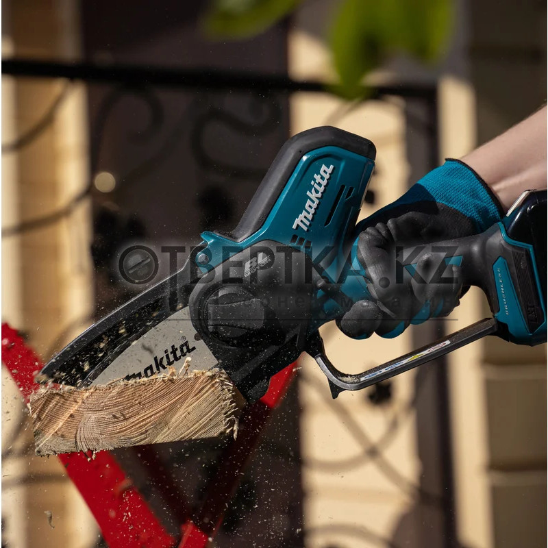 Аккумуляторная цепная пила Makita DUC150SF - станет незаменимым помощником при обрезке веток. Больше не придется готовить топливную смесь, дергать стартер и заниматься обслуживанием бензинового двигателя. Компактный корпус и малый вес делает инструмент маневренным. Специальная компоновка инструмента позволяет управлять им при помощи одной руки. Максимальный диаметр, который она может распилить составляет 30 см (рекомендуемый до12 см). Максимальная скорость цепи составляет 8 м/с. Мощный бесщеточный двигатель не требует обслуживания. Масляный насос автоматически подает масло на режущую гарнитуру. Широкая планка защитит пальцы, если соскочит цепь. Натяжка цепи осуществляется без инструментов. В комплект входит аккумулятор 3 Ач и зарядное устройство DC18SD. Данный тип аккумулятора LXT подходит более чем для 400 инструментов Makita из линейки LXT, а это значит, что его можно использовать не только с садовым инструментом, но и с шуруповертами и перфораторами Makita.
