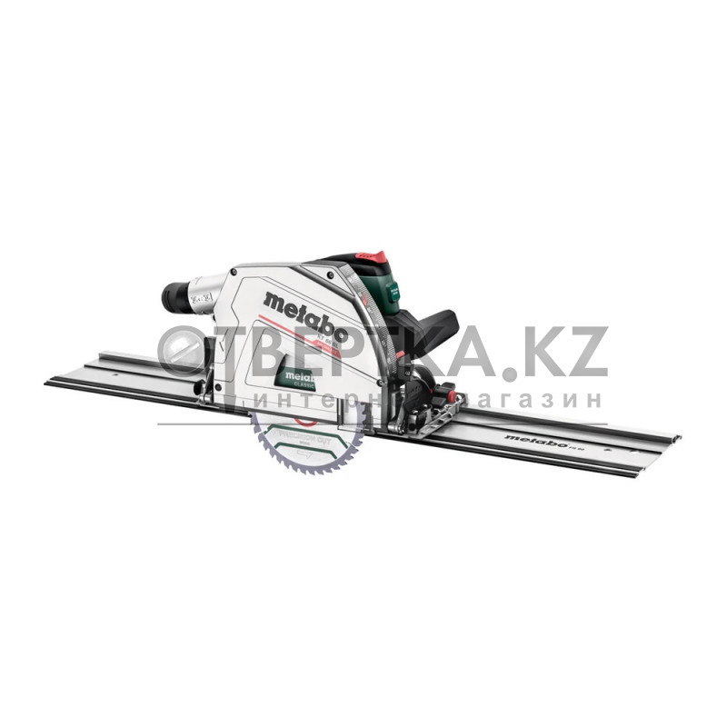 - Работает без зазора на направляющих шинах Metabo и других производителей — идеально подходит для высокоточной резки по длине и углу.