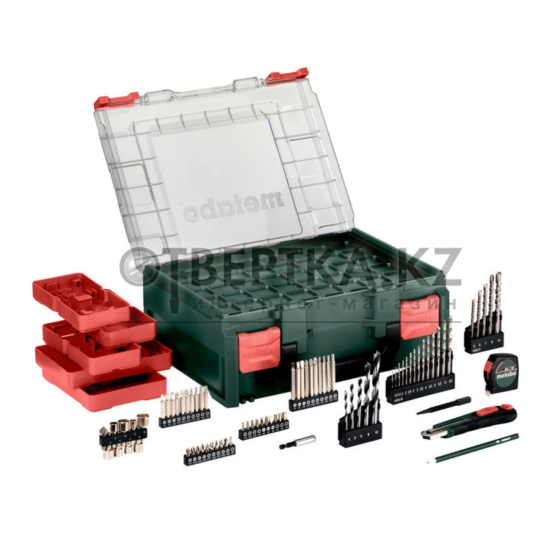 - Комплект поставляется в формате “передвижной мастерской” — 78 аксессуаров для сверления, заворачивания и разметки.