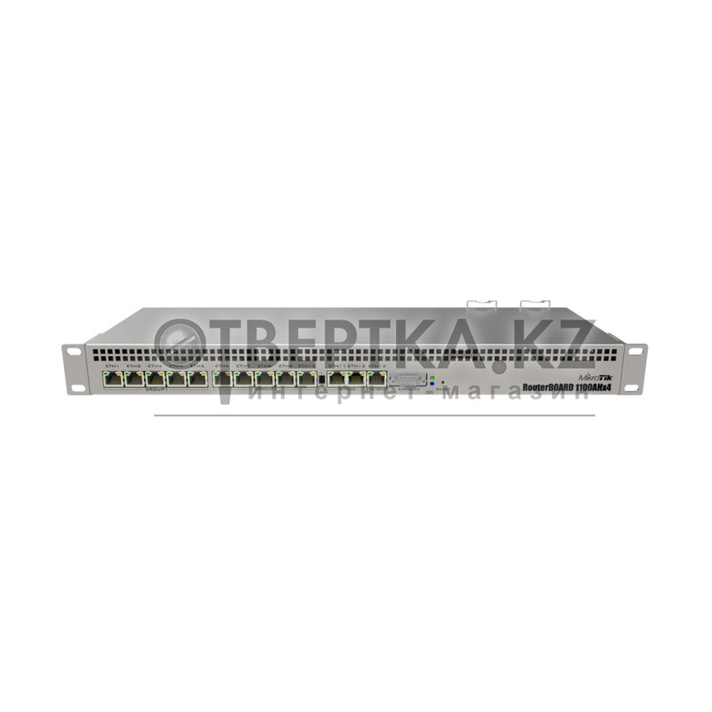 Сетевой маршрутизатор MikroTik RB1100x4 (Сетевой маршрутизатор, MikroTik, RB1100AHx4, RB1100x4, 13 портов 10/100/1000M,Passive PoE 802.3af/at, RouterOS, -40°C to 70°C, стоечный 1U)