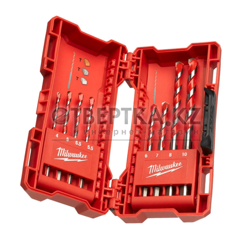 Набор ударных сверл по бетону Milwaukee 4932471193 Premium включает 8 сверл с наконечниками из карбида вольфрама (TCT), предназначенных для работы с бетоном, газобетоном, кирпичной кладкой, шифером и гранитом.