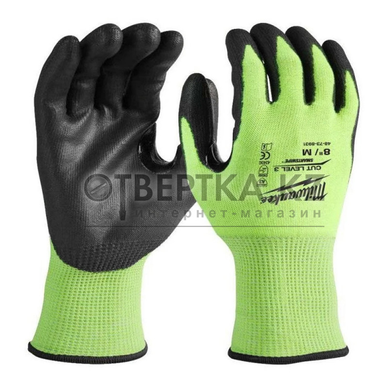 Сигнальные перчатки Milwaukee 4932478131, уровень сопротивления порезам 3, 8/M