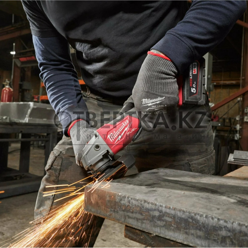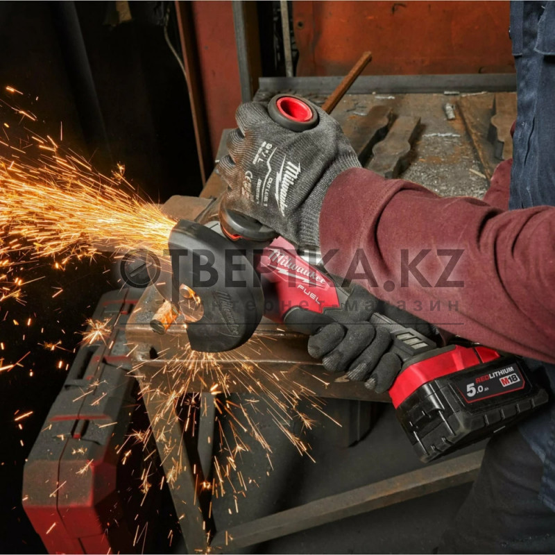 Угловая аккумуляторная шлифовальная машина MILWAUKEE M18 FSAG125X-501BRF FUEL — мощная и компактная угловая шлифовальная машина с ползунковым переключателем. Поставляется с аккумулятором 5,0 А·ч, зарядным устройством и транспортной сумкой.
