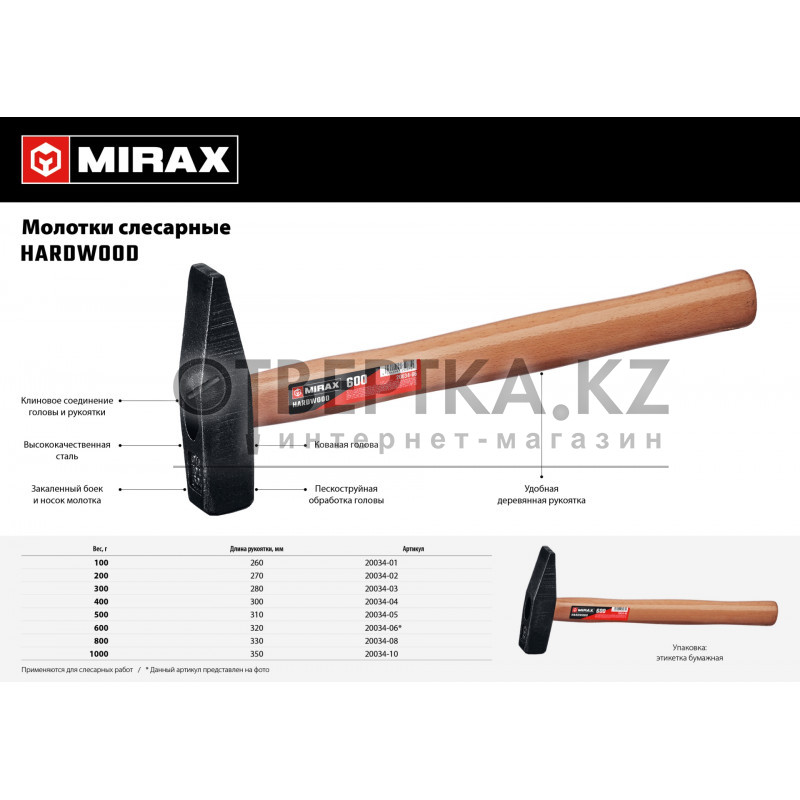 Молоток MIRAX c деревянной рукояткой -удобный ударный инструмент