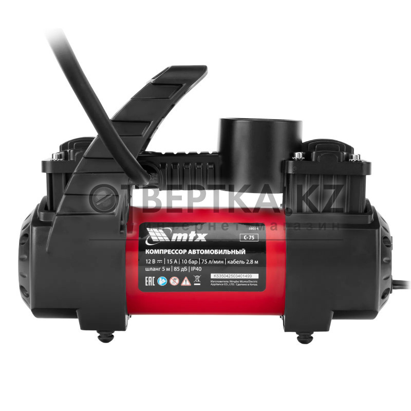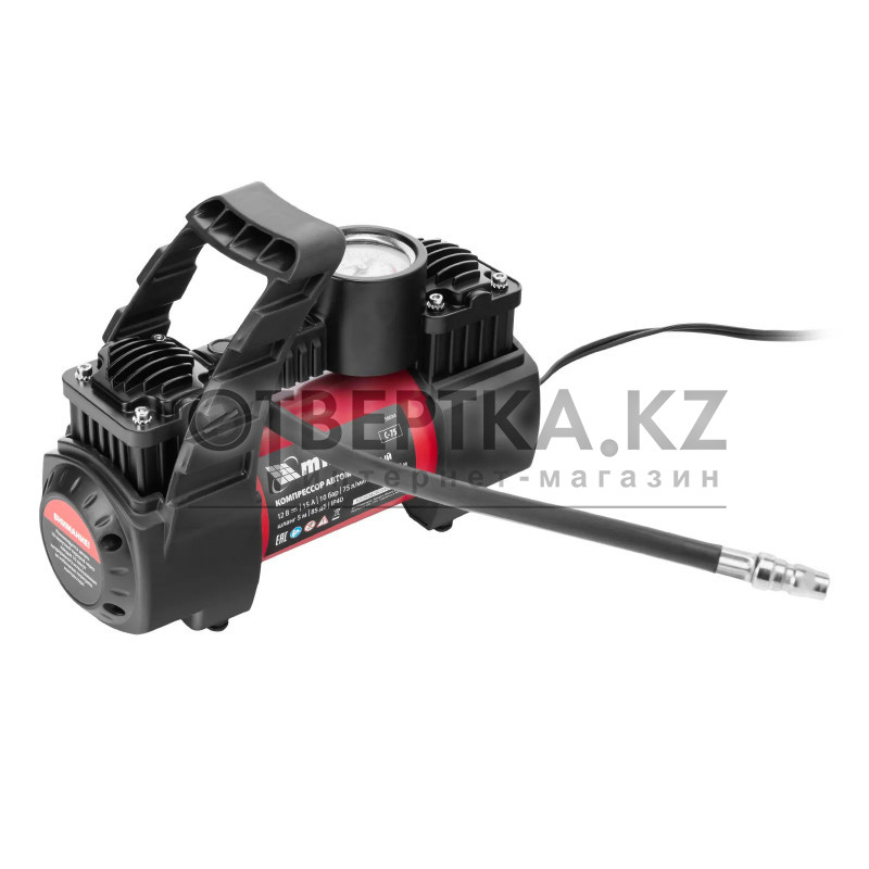 Автомобильный компрессор MTX C-75 58034 производительностью 75 л/мин работает от сети 12 В и подает сжатый воздух под давлением 10 атм. С его помощью можно быстро накачать шины автомобиля или велосипеда, а также подкачать мяч, надувной матрац, лодку и т.д. В комплект поставки включен набор из 3 насадок для эффективного решения различных задач. Компрессор подключается к автомобильному аккумулятору, незаменим в поездке и на отдыхе.