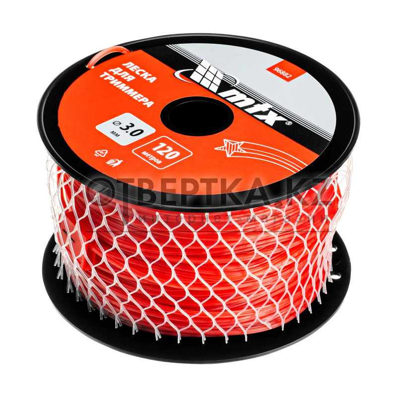 Леска для триммера MTX 96882 с сечением «звезда», толщиной 3,0 мм и длиной 120 мм, поставляется на катушке и позволяет скашивать мягкую, молодую траву, а также густую и жесткую растительность. С ее помощью можно справляться с сорняками, сухой травой и побегами кустарников. Леска используется в качестве режущего элемента для бензиновых триммеров. Пригодится на дачном участке, а также для ухода за газонами на придомовой территории, в скверах и т.д.
