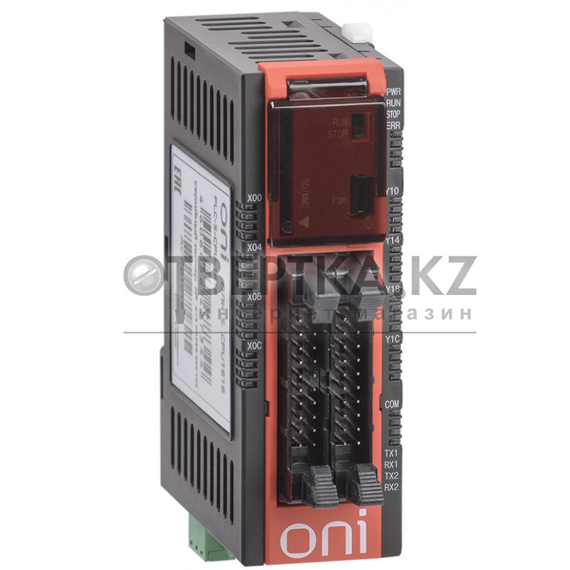 Модуль ЦПУ ONI ПЛК S. Встроенные 16 дискретных входов (Sink/Source) и 16 дискретных выходов (транзисторные), интегрированный Ethernet 10/100 Мб 1 канал, RS232C 1 канал, RS485 1канал, поддержка карт памяти SD/MMC. Головное устройство программируемого логического контроллера, производящее обработку данных автоматизированного процесса, в соответствии с заданной программой. Карта памяти используется для хранения данных и при использовании интегрированного WEB сервера. Напряжение питания 24 В DC.