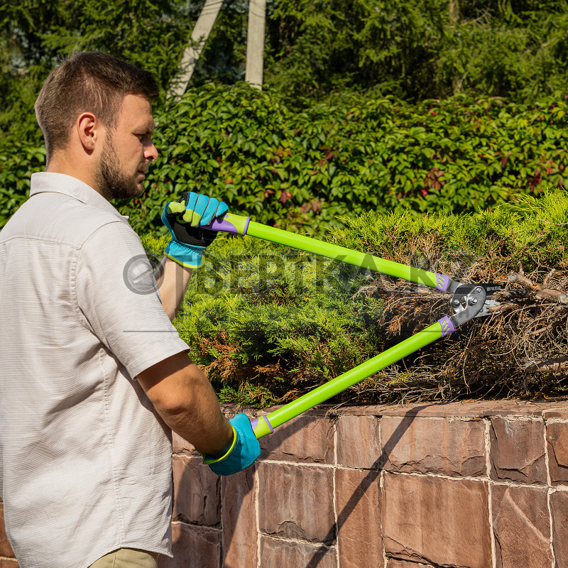 - Удобная работа — благодаря рифленой поверхности наковальни сучкорез надежно удерживает ветку во время обрезки.