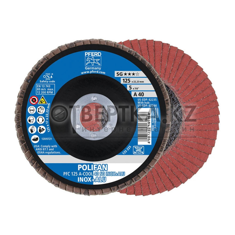 Лепестковый шлифовальный круг, диаметр 125 мм, зернистость G40 — предназначен для обработки алюминия, цветных металлов и нержавеющей стали. Конструкция с лепестками и системой охлаждения обеспечивает эффективное шлифование и предотвращает перегрев материала.