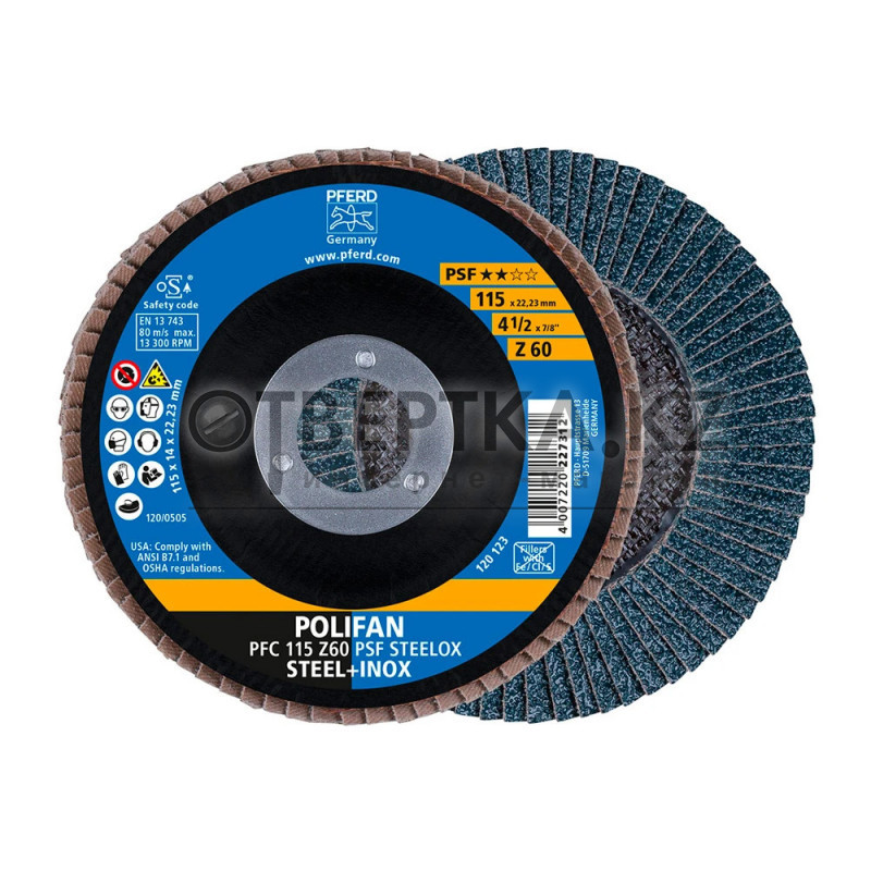 Веерный шлифовальный круг PSF-Z — универсальный инструмент с повышенными требованиями к производительности. Предназначен для обработки металлов, включая сталь и нержавеющую сталь, с эффективным снятием материала на сварных швах и кромках.