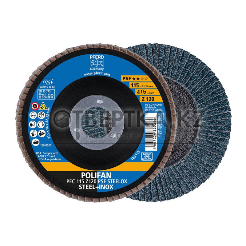 Веерный шлифовальный круг PSF-Z — универсальный инструмент с повышенными требованиями к производительности. Предназначен для обработки металлов, включая сталь и нержавеющую сталь, с эффективным снятием материала на сварных швах и кромках.