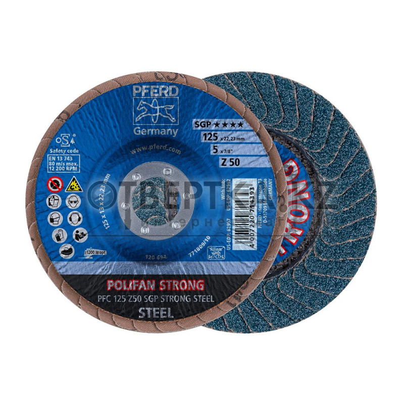 Веерный шлифовальный круг PSF-Z 125x13x22,23 мм, зерно 50 — универсальный инструмент особо прочный с повышенными требованиями, предназначенный для обработки сварных швов и кромок на стали и нержавеющей стали. Агрессивная характеристика обработки обеспечивает высокую производительность съёма материала при использовании мощных углошлифовальных машин с повышенным прижимным усилием.