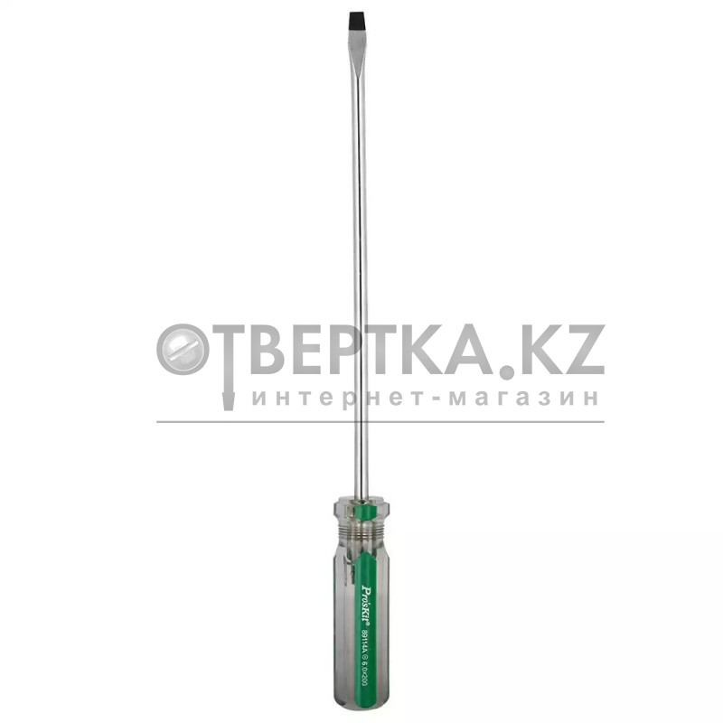 Отвертка ProsKit 89114A - это качественный инструмент с цветной рукояткой и прямым шлицем. Стержень отвертки изготовлен из хром-молибден-ванадиевой стали AISI 8660, что обеспечивает ей долговечность и устойчивость к износу. Рабочая длина стержня составляет 200 мм, а диаметр - 6 мм, что делает ее подходящей для различных видов работ. Улучшенный дизайн рукоятки из ПВХ позволяет комфортно держать инструмент в руке, а точно подогнанный наконечник гарантирует идеальное сцепление с винтами.