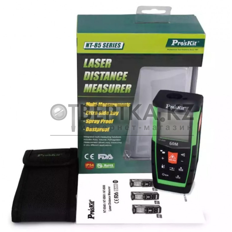 Лазерный дальномер ProsKit NT-8560 — это высокоточный инструмент, предназначенный для измерения расстояний с помощью лазерного луча. Прибор может измерять расстояния в диапазоне от 0,2 до 60 метров с точностью до ±1,5 мм, что делает его идеальным для профессионального использования в строительстве, дизайне интерьеров и других областях, где требуется точное измерение.