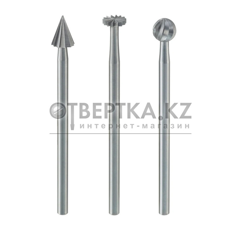 Вольфрам – ванадиевые фрезы. Набор (3 шт.: конус, шайба, сфера). Высококачественная вольфрам – ванадиевая сталь. Рабочая часть и хвостовик изготавливаются из одной цельной заготовки. Высокоточная нарезка и полная соосность гарантируют большой срок службы. Хвостовики 2,35 мм. Для работ по мягкой и твердой древесине, цветным и драгоценным металлам, пластику и фанере. Идеальны для фрезерования, фасонного фрезерования, профилирования и шлицевания.