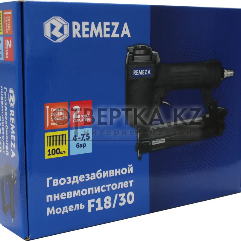 Гвоздезабивной пистолет Remeza F18/30 8154990 - применяется для соединения различных материалов гвоздями во время ремонтно-отделочных и строительных работ.