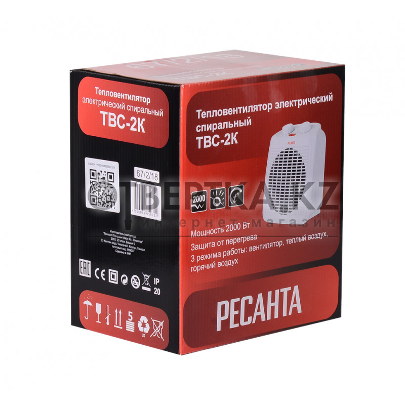 Тепловентилятор Ресанта TBC-2K — это компактный и эффективный климатический прибор, предназначенный для быстрого обогрева помещений различного назначения. Благодаря сочетанию мощного нагревательного элемента и высокопроизводительного вентилятора устройство мгновенно прогревает воздух, обеспечивая комфортную температуру.