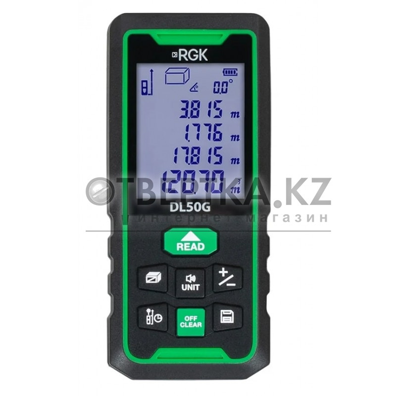- Лазерный дальномер с угломером RGK DL50G 778176 можно использовать в помещениях с большой площадью. Внесен в госреестр № 87359-22.