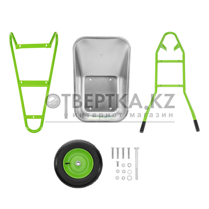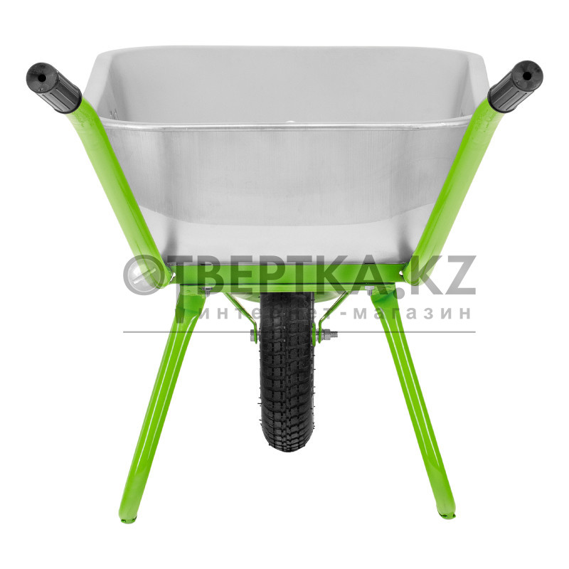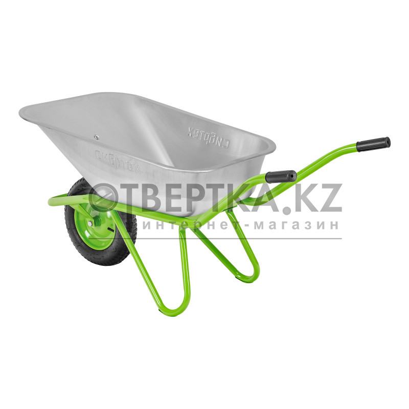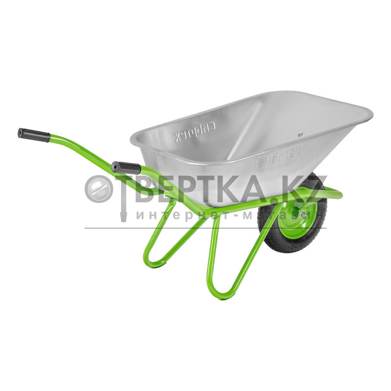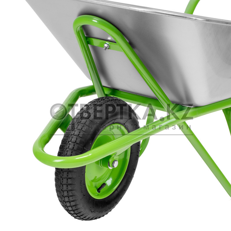 - Надежная конструкция — рама диаметром 32 мм и опора диаметром 25 мм изготовлены из стальной трубы с толщиной стенки 1 мм, поэтому тачка выдерживает нагрузку до 170 кг.