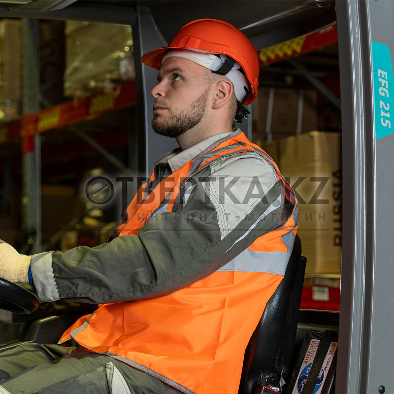 - Благодаря ярко-оранжевому цвету работник будет заметен на строительной площадке даже в условиях плохой видимости.