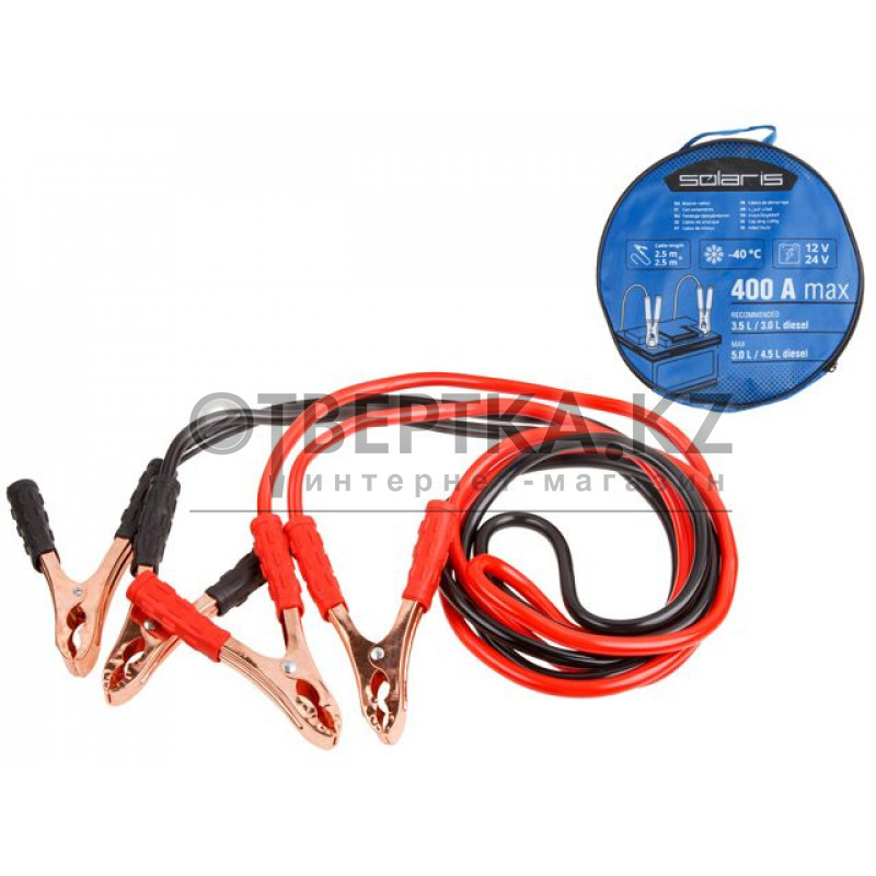 Провода изолированы термопластичной резиной, благодаря чему они легко гнутся и не теряют свою эластичность до температуры -40С, а длина проводов позволяет дотянутся до аккумулятора автомобиля донора, даже при парковке в труднодоступных местах.