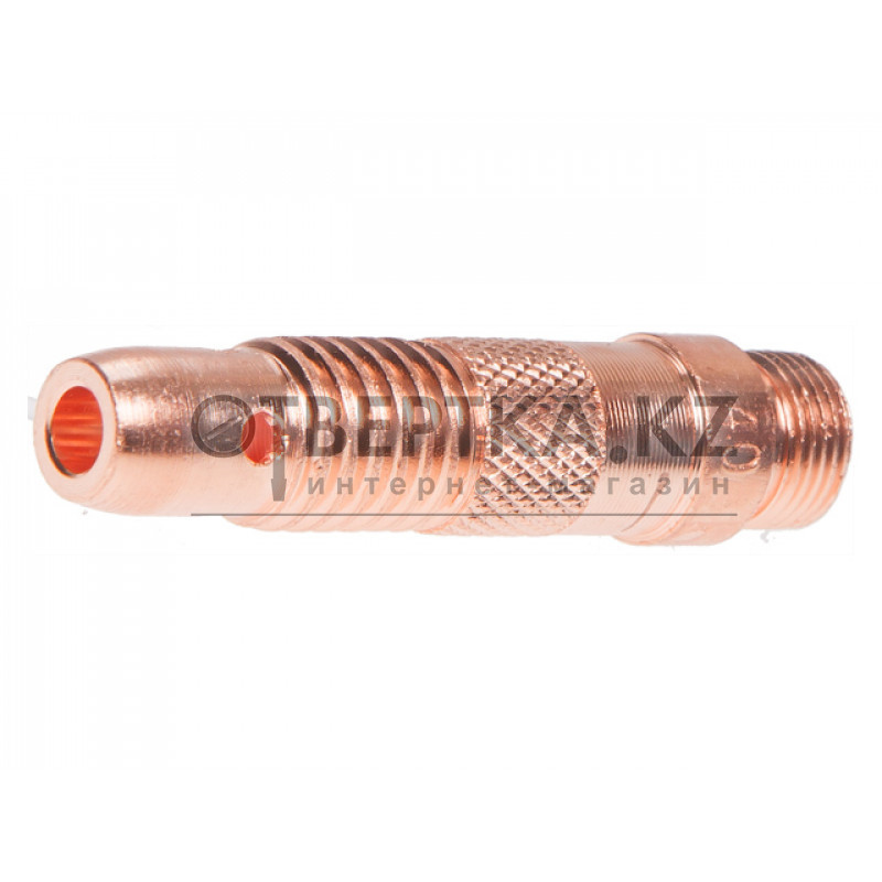 Зажим цанги является расходным элементом TIG горелки. Предназначен для фиксации электрода с цангой в TIG горелке. Отверстия на зажиме служат для распределения потока защитного газа.
