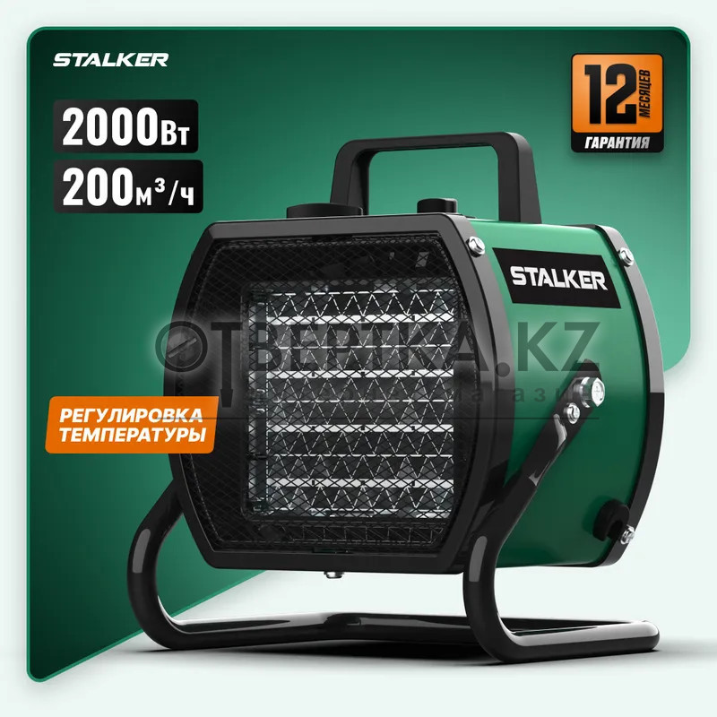 Тепловентилятор STALKER ECH-2 - предназначен для быстрого и равномерного обогрева помещений, гаражей, мастерских и дачных домов. Керамический нагревательный элемент обеспечивает мягкое тепло без пересушивания воздуха, а встроенная система защиты от перегрева гарантирует безопасную работу. Тепловая пушка проста в управлении и надежна в эксплуатации, подходит для бытового использования.
