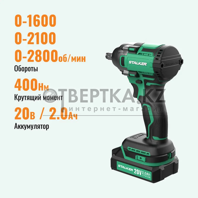 Бесщеточный аккумуляторный гайковерт STALKER IW20-400 Li BL - предназначен для быстрогооткручивания и закручивания гаек и болтов. С высоким крутящим моментом в 400 Нм обеспечивает широкий спектр применения. Мощный бесщеточный двигатель обеспечивает высокую производительность и долгий срок службы.