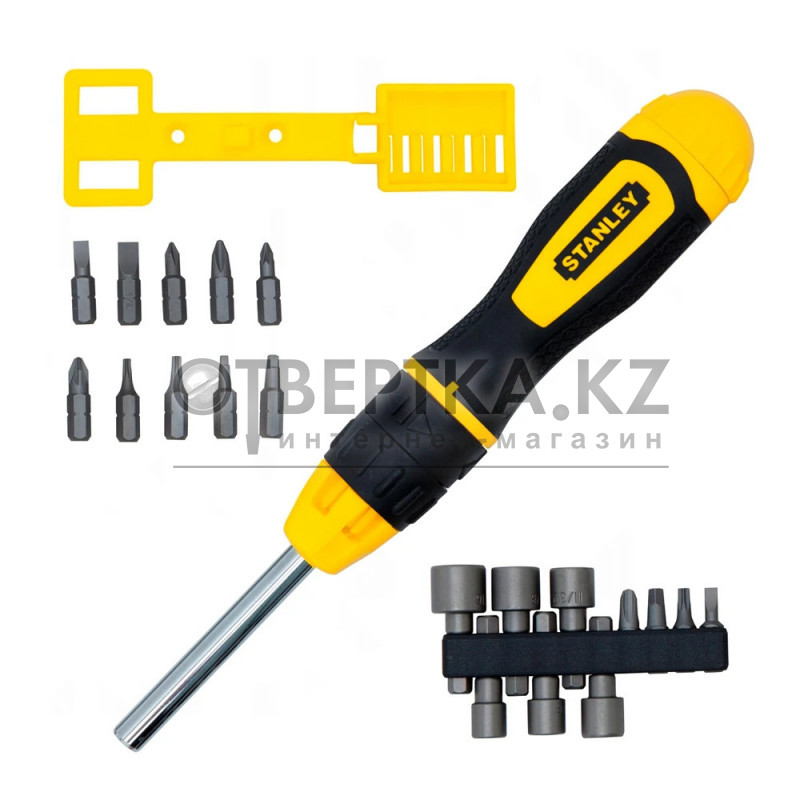 Отвертка "Multibit" с храповым механизмом поставляется в комплекте с 20-ю вставками, обеспечивая универсальность и удобство при выполнении различных видов работ.