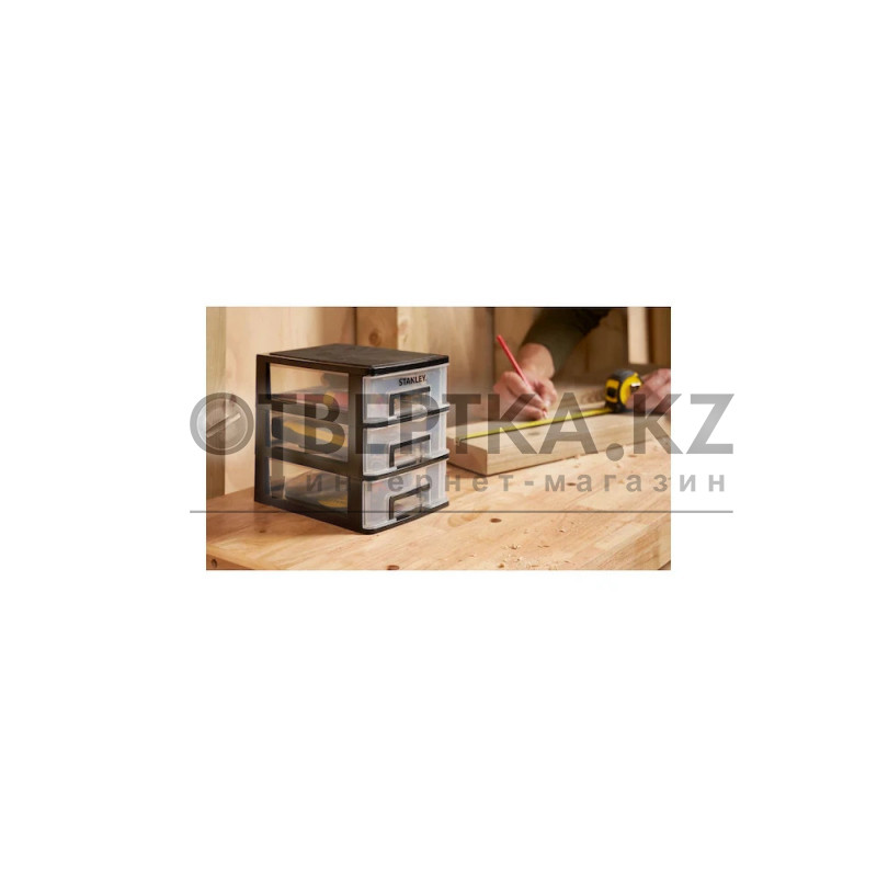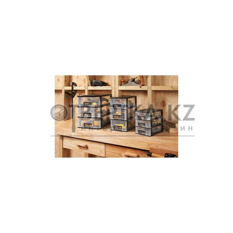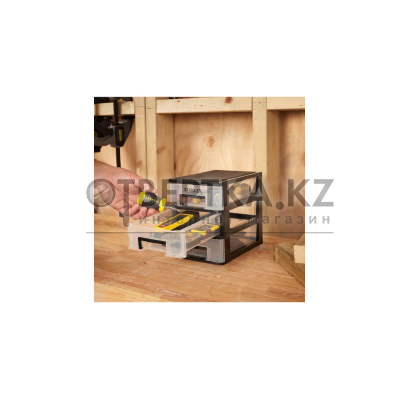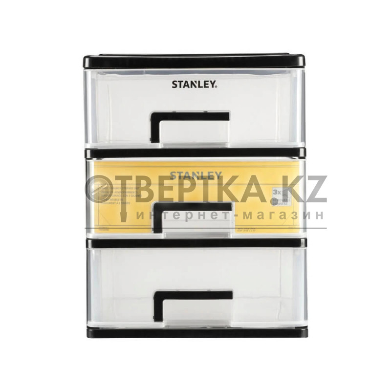 Компактный стеллаж для хранения STANLEY® с тремя ящиками идеально подходит для организации мелких деталей, крепежа и аксессуаров. Оснащен прозрачными и съемными ящиками для удобного доступа к содержимому. Легкая и компактная конструкция подходит для использования в мастерских и гаражах.