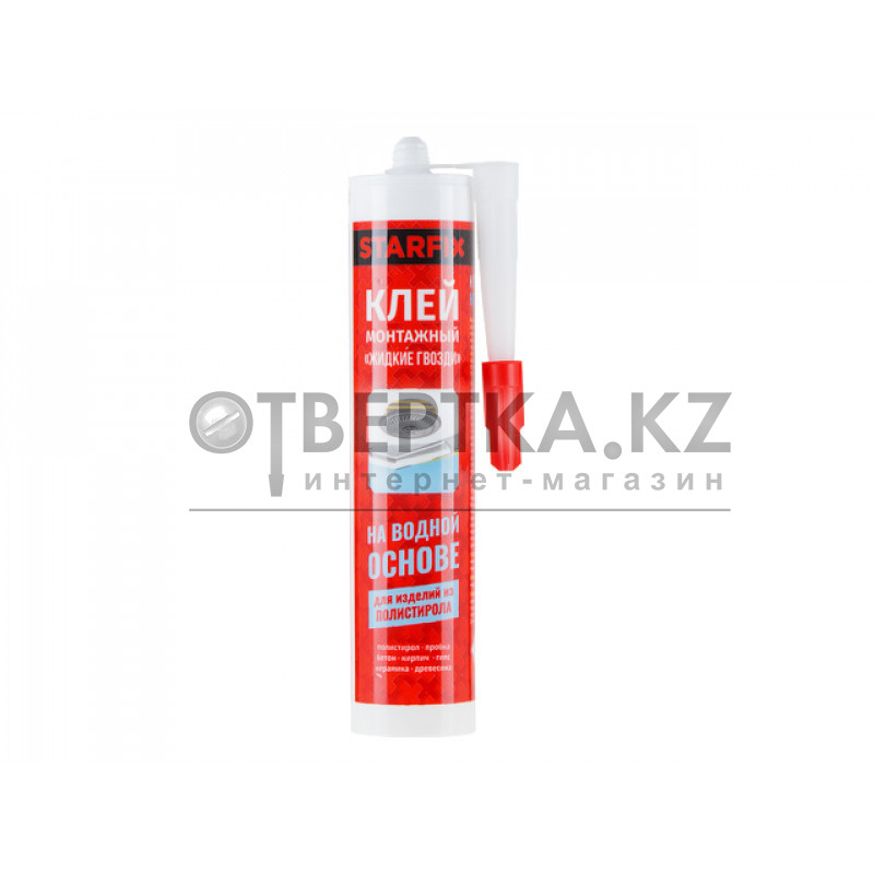 Монтажный клей на основе стироло-акриловой дисперсии. Без растворителей. Приклеивает внутри и снаружи помещений изделия из легких материалов (пенополистирола, картона, пробки, древесины) к пористым основаниям бетону, кирпичу, гипсу, штукатурке, древесине. Быстрое и сильное начальное схватывание. Отвердевший шов белого цвета.