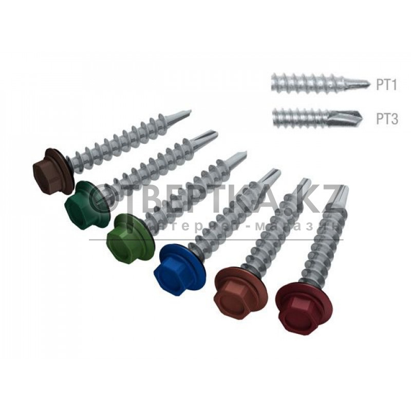 Оцинкованный кровельный саморез с шестигранной головкой, шайбой c резиновой EDPM прокладкой и сверловидным наконечником. Основание при креплении самореза - металл.