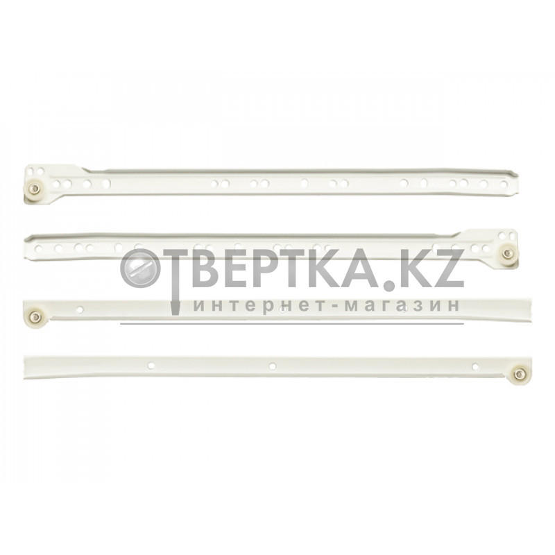 Роликовые направляющие состоят из двух частей одна из которых жестко крепиться на выдвижном элементе, а другая на каркасе шкафа. Выдвижение происходит за счет пластиковых роликов перемежающихся в специальных пазах.