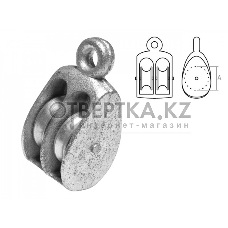 Стальной оцинкованный блок с двумя металлическими шкивами применяется для изменения направления движения для тросов и канатов, увеличения силы в грузоподъемном оборудовании.