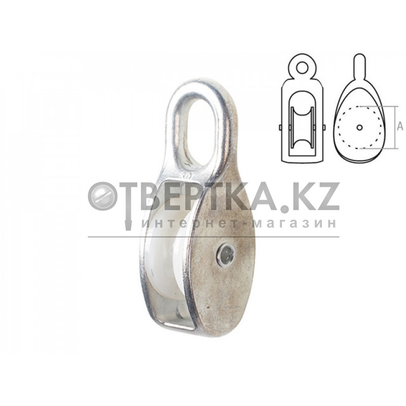 Стальной оцинкованный блок с нейлоновым кольцом-шкивом применяется для изменения направления движения для неметаллических тросов, веревок и канатов, увеличения силы в грузоподъемном оборудовании.