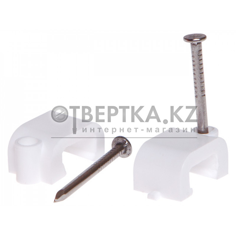 Скоба для крепления прямоугольного кабеля 8 мм белая, с гвоздем (50 шт в зип-локе) STARFIX SMZ2-85224-50