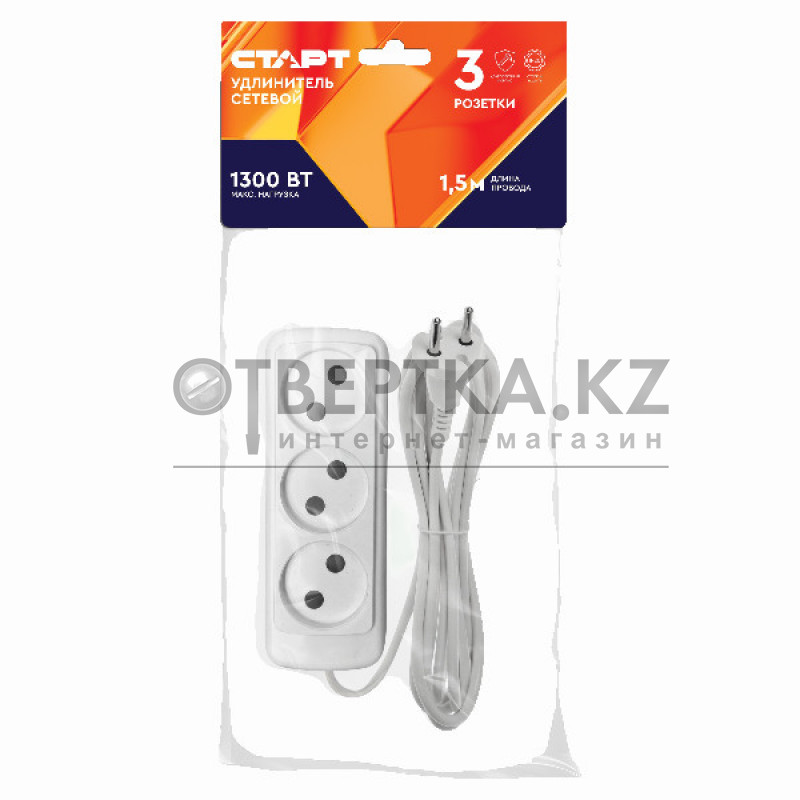 Удлинитель сетевой СТАРТ СУД 3x1 ШВВП– 20 белый EL с колодкой на 3 розетки используется для подключения к сети до трех электроприборов одновременно суммарной мощностью 1300 Вт. Универсален, подходит для использования дома и в офисе.