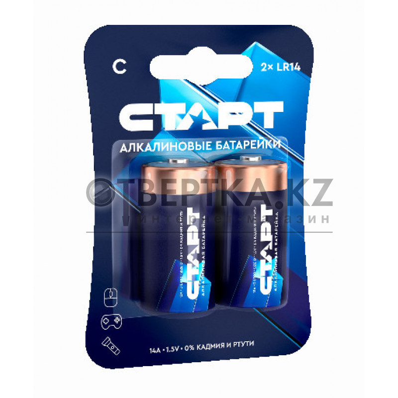 Набор из 2-х элементов питания типоразмера C («бочонок») от компании СТАРТ, отличающихся повышенной энергоёмкостью.