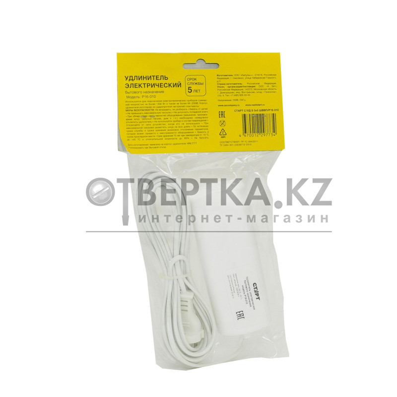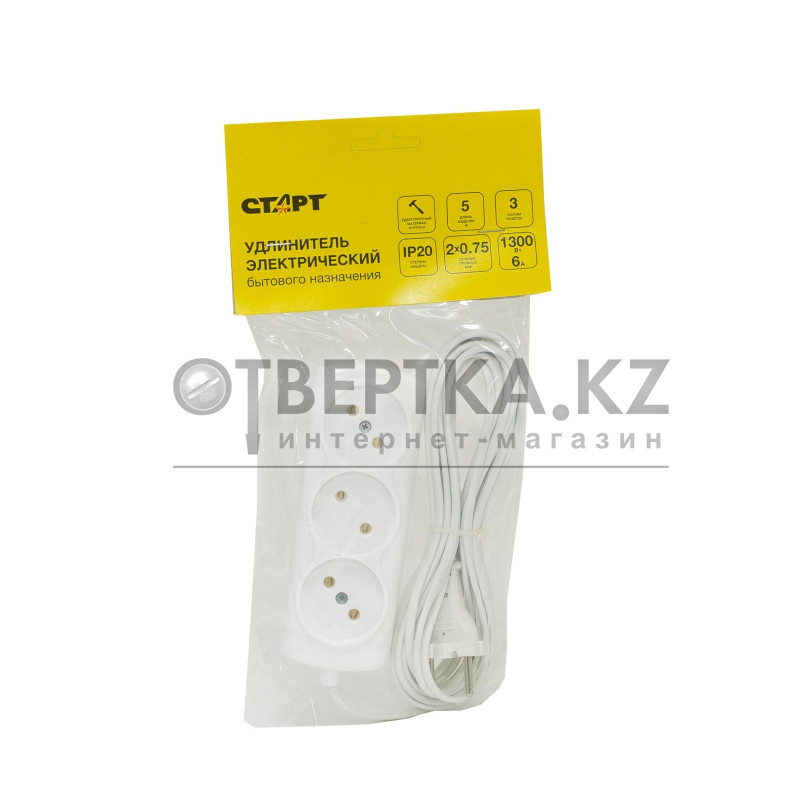 Удлинитель сетевой универсальный СТАРТ С/УД 3х5 ШВВП/P16-010 с колодкой на 3 розетки используется дома и в офисе для подключения к сети до трех электроприборов суммарной мощностью до 1300 Вт.